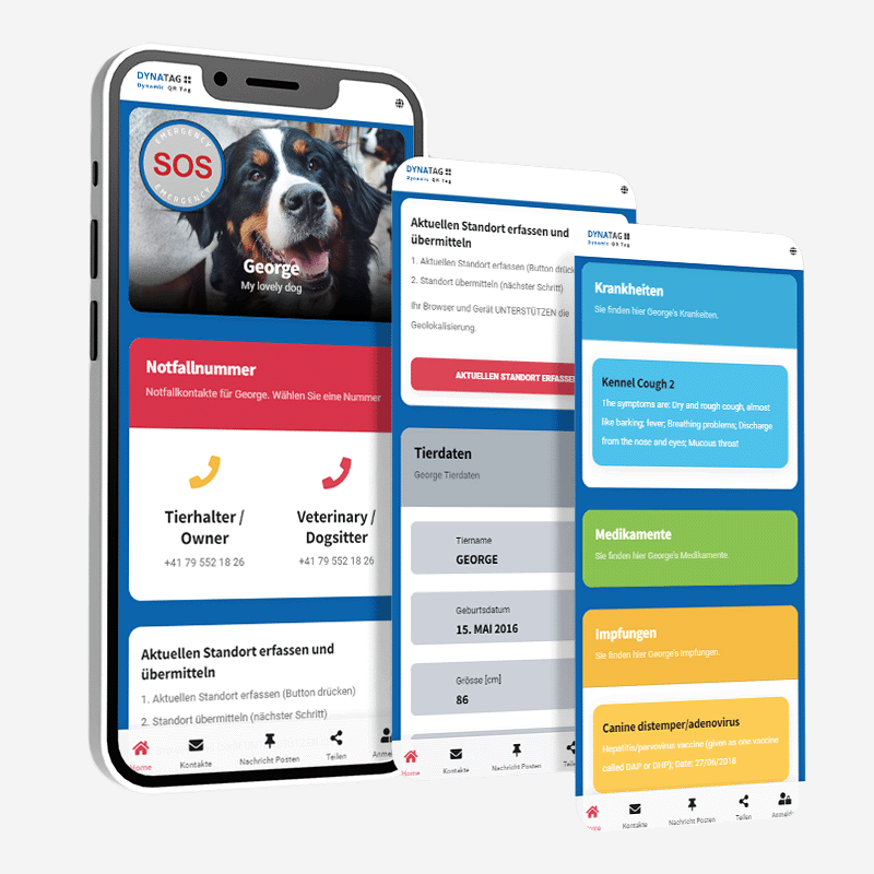 When the QR code is scanned by someone, a personalized emergency page automatically opens in the smartphone's browser—no additional app is required. The location of the person who scanned the code can also be detected and shared (legal consent from the finder is required). This way, you can see where your pet was located. Ideal for emergencies or lost pets.